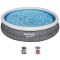 Välj en plan yta, blås upp toppringen och poolen kommer att resa sig vart efter den fylls med vatten. Inbyggd dräneringsventil för flödeskontroll ansluts till en trädgårdsslang för att tömma vatten. Lätt att demontera för vinterförvaring