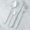 4 gafflar, 4 knivar, 4 matskedar och 4 teskedar – allt i perfekt match och tillverkat i slitstarkt rostfritt stål som tål att användas dag efter dag.