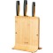 Det moderna knivblocket är tillverkat av hållbart anskaffad FSC®-certifierad bambu (FSC C108780) och plast, och innehåller tre av de mest använda köksknivarna: