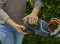 En tydlig kontrollampa på redskapet visar batteriets laddstatus. Det omslutande ErgoLine-handtaget med integrerad strömbrytare ger ett säkert och bekvämt grepp i alla arbetspositioner. De 50 cm långa knivarna har en optimerad knivgeometri som ger exakta, jämna snitt utan avbrott. Vid arbete nära mark, murar eller staket skyddar ett integrerat stötskydd knivarnas spets mot skador.