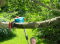 Bekväm beskärning av grenar högt upp i träden, säkert stående på marken